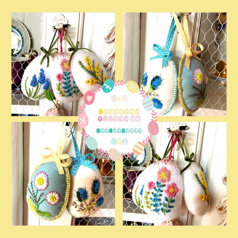 Pour décorer la maison en cette période de Pâques nous vous proposons ces adorables petits oeufs en feutrine brodée de jolies fleurs printanières ! De quoi faire une bien belle chasse aux oeufs "précieux". Bonne broderie !