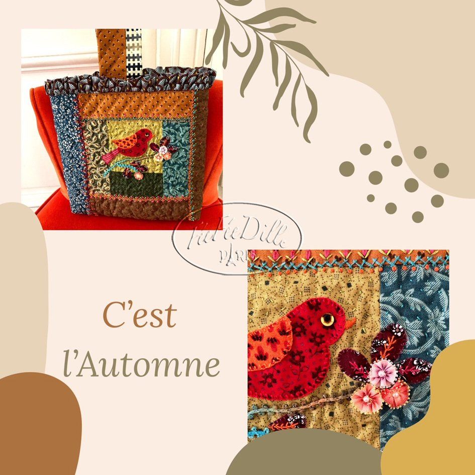 Pour fêter dignement l'arrivée de l'Automne, nous avons choisi ce magnifique sac en patchwork rebrodé avec appliqués, perles et rubans. Une merveille à découvrir sans tarder sur la boutique du site rubrique : Broderie / Kits.